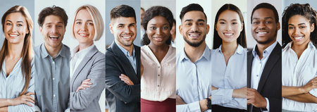 Group of Diverse Business Professionals Smiling in a Collage Format Indoors Generative AI