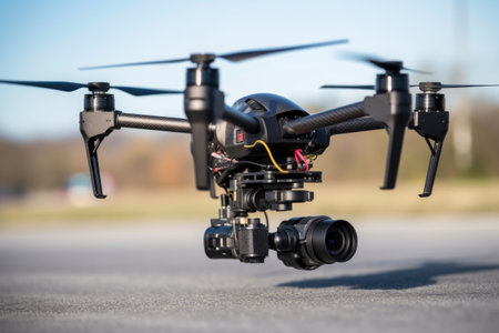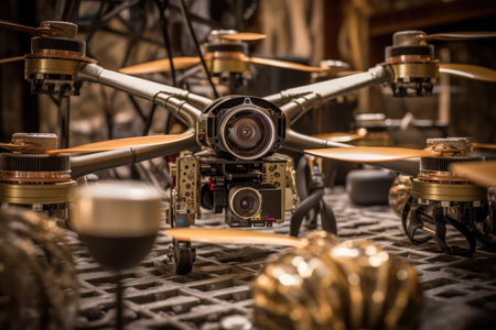 close-up of drone propellers and camera equipment, created with generative ai
