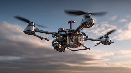close-up of drones propellers and sensors, created with generative ai