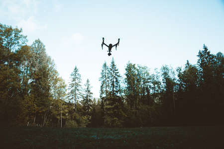 drone copter flying with digital camera in outdoor.