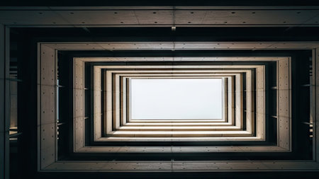 Abstract lighting patterns on staircase with shadow play for modern design concepts