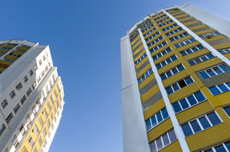 Residential building in yellow colors against blue sky
