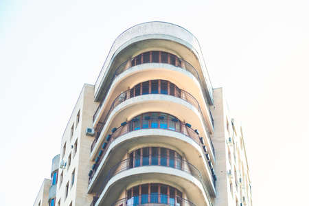 Close up detail with a new built apartment building in Bucharest, Romania