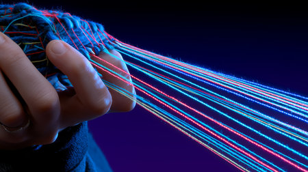 multicolored threads on a black background