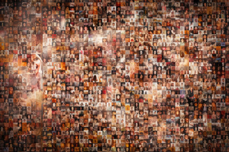 Wall with many images as pattern. Many unfocused photos background. Created with Generative AI