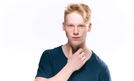 Redhead guy posing freckles close-up studio lifestyle