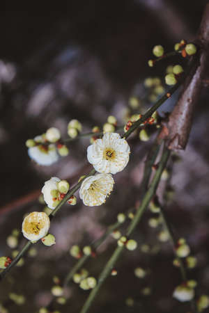 Prunus mume flower or also called maehwa in korean blossoming in spring