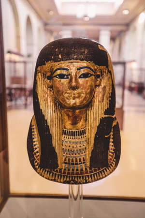 Cairo, Egypt - November 02, 2021: Golden Mask of Ancient Egyptian Pharaoh Tutankhamun in the Cairo Egyptian Museum, the oldest archaeological museum in the Middle East