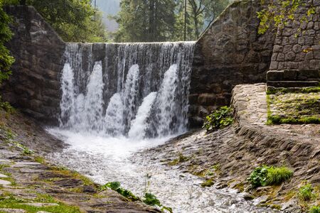 Waterfall on the dam in Zakopane. Summer