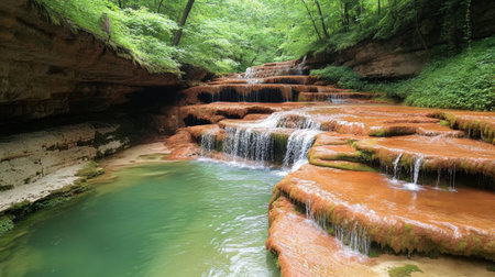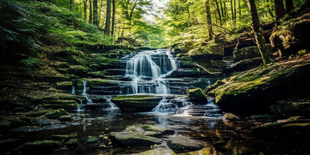 Tranquil and refreshing waterfalls nestled deep within the verdant embrace of a lush forest