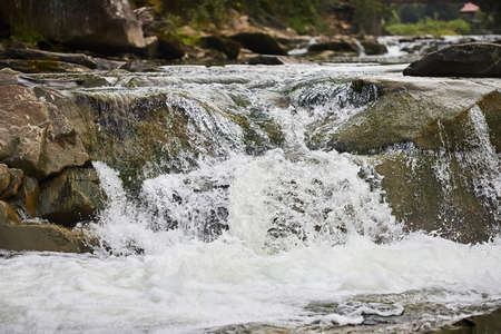 The mountain river Prut and waterfalls Probiy in Yaremche, Carpathians, Ukraine