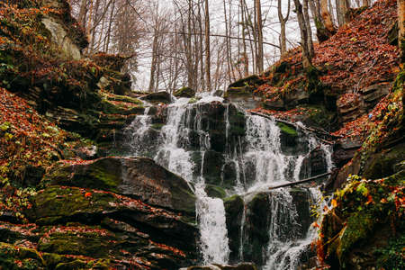 picturesque waterfall in the autumn forest. Nature of Ukraine