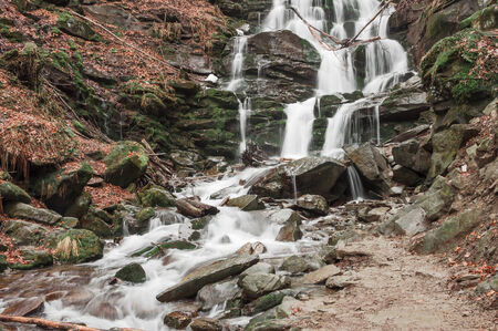 Carpathian mountain waterfall Shypot. Autumn landscape with a waterfall