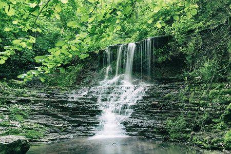 The beautiful waterfall in forest, spring, long exposure