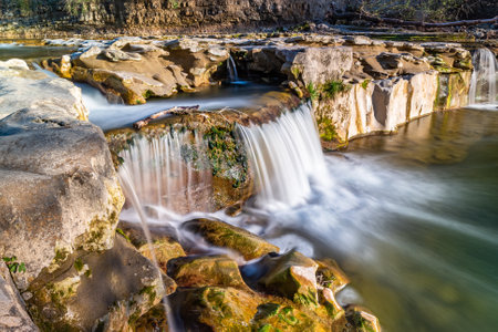 Famous Satiny waterfalls. Breathtaking, untouched nature around the water flowing down cascades creating mini waterfalls. Beskydy mountains, Czech Republic, Central Europe. Without human intervention.