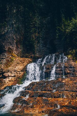 Beautiful picturesque waterfall in the forest in the highlands