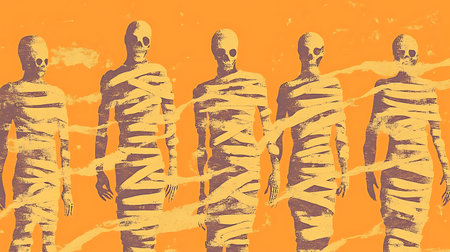 Halloween pastel orange vector background adorned with minimalistic mummies