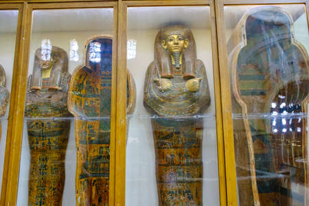 Luxor, Egypt - November 13, 2020: Ancient Egyptian Exhibits of the archaeological Mummification Museum in Upper Egypt