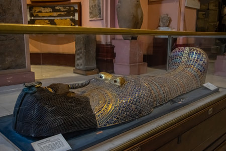Luxor, Egypt - November 13, 2020: Ancient Egyptian Exhibits of the archaeological Mummification Museum in Upper Egypt