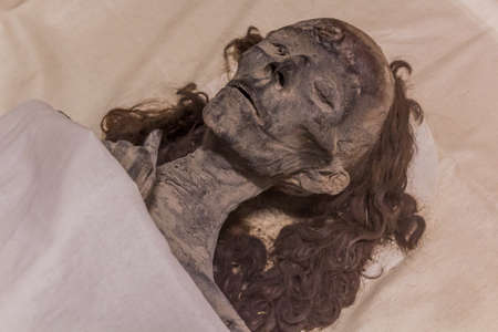Italy, Florence - October 02 2016: view of the child mummy in the National Archaeological Museum of Florence on October 02 2016 in Tuscany Italy.