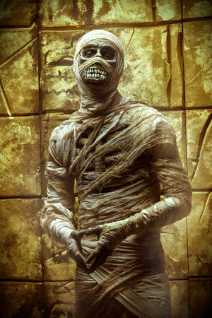 Scary evil mummy climbs out of an ancient Egyptian tomb. Halloween. Ancient Egyptian mythology.