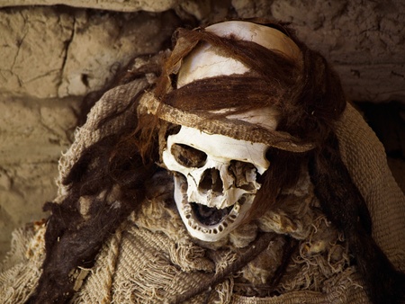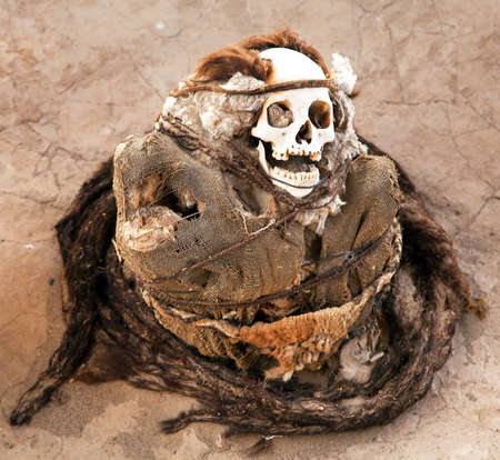 Mummy in Chauchilla archeological site near Nazca (Peru)