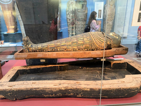 LONDON, UNITED KINGDOM - MAY 15: Detail of ancient egyptian mummy in British museum on May 15, 2018 in London