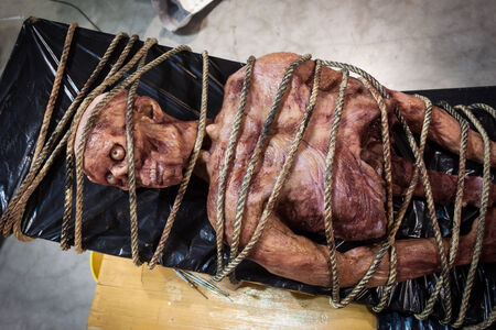 MILAN, ITALY - MARCH 14: Latex corpse on display at Cartoomics, event dedicated to comics, cartoons, cosplay, fantasy and gaming on MARCH 14, 2014 in Milan