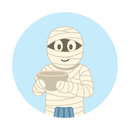Mummy Boy Scary Cartoon Halloween Character Flat Vector Illustration