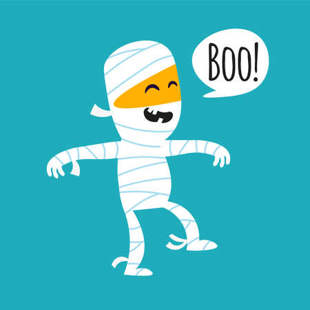 Mummy monster for Halloween. Vector flat cartoon illustration