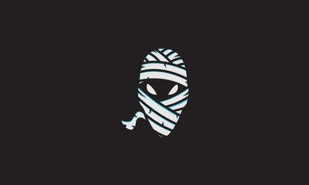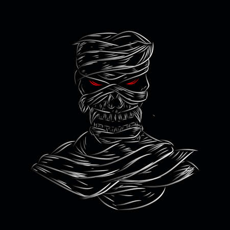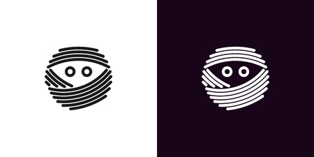 Mummy face with eyes in outline style. Vector illustration icon of bandaged Mummy head with eyes in black and white color. Isolated graphic element for decoration of Halloween holiday