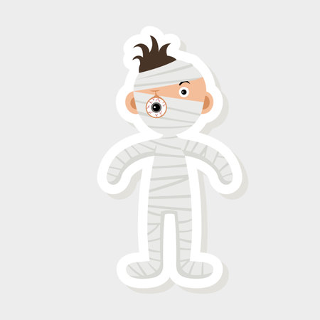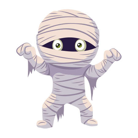 cute boy wear mummy costume happy halloween concept party celebration isolated flat cartoon character isolated full length vector illustration