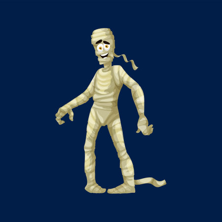 Cartoon spooky mummy Halloween character, vector funny bandaged monster. Costume for trick or treat party for kids, horror mascot with happy smiling face and bandage on body isolated personage