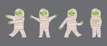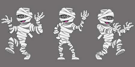 Set of cute Mummy . Halloween cartoon characters . Vector.