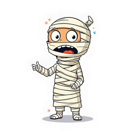 Animated Mummy Character Expressing Joy with a Dabbing Dance Move