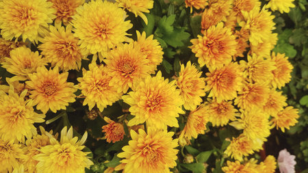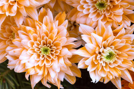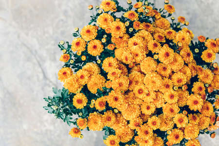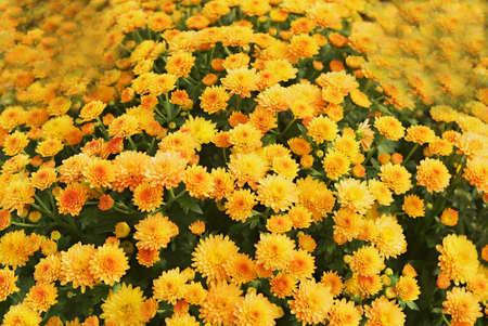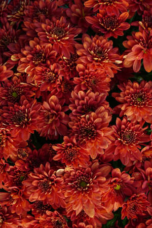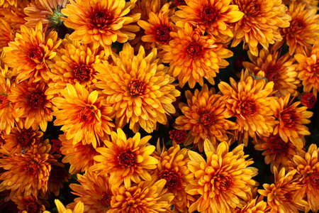 Orange hardy chrysanthemum plants as a pattern. Abstract flower background texture