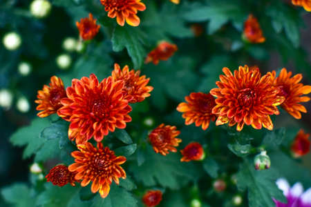 orange-red Korean chrysanthemum flowers in the garden in autumn as background