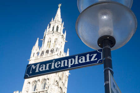 View on famous ancient Marienplatz in sunlight against of blue sky in Munich,Germany