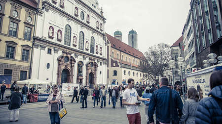 Munich, Germany - April 2014: People walking on the streets of Munich city center, Munchen city centre old town
