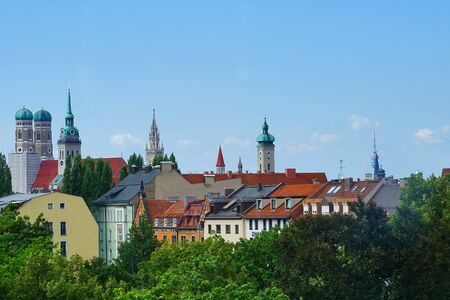 Aerial cityscape of Munich historical center with Frauenkirche. Munich. Germany