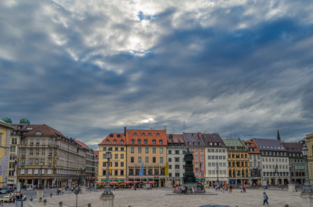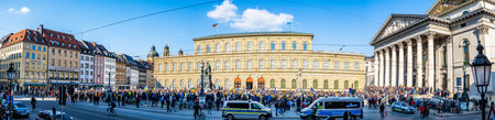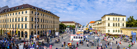 Munich, Germany - July 6, 2022: Street view over Max-Joseph-Platz. Named after King Maximilian Joseph. Max-Joseph-Platz serves as the western starting point of the royal avenue Maximilianstrasse.