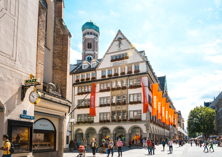 MUNCHEN, GERMANY - JULY 25, 2015: Urban scene, architecture in the old town of Munich, Germany