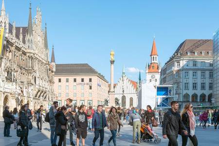 people visit the Marienplatz in Munich, Germany