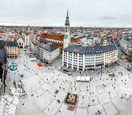 Aerial view of Marienplatz in Munich, Germany.