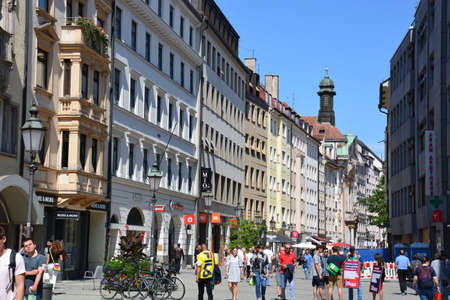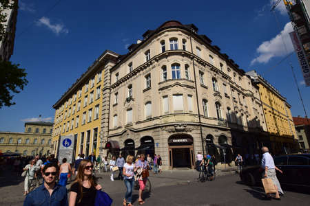 MUNICH, GERMANY-June 4: Street view of Tourists on foot Street in Downtown Munich on June 3, 2016, in Munich, Germany.