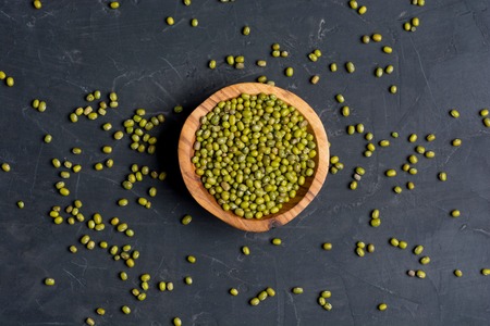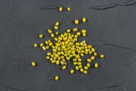 Green bean or mung bean on the black stone background