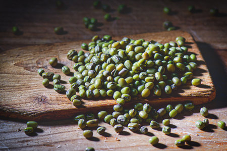 mung beans Vigna radiata on olive wood