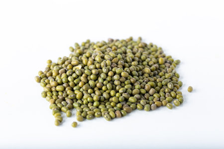 Green mung beans isolated on white background