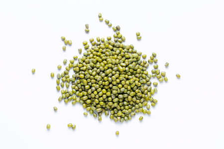 Mung beans on a white background Top view. Healthy protein food