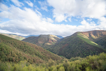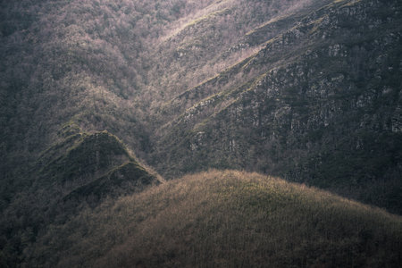 The wooded mountains of the Range in winter in Triacastela Lugo Galicia